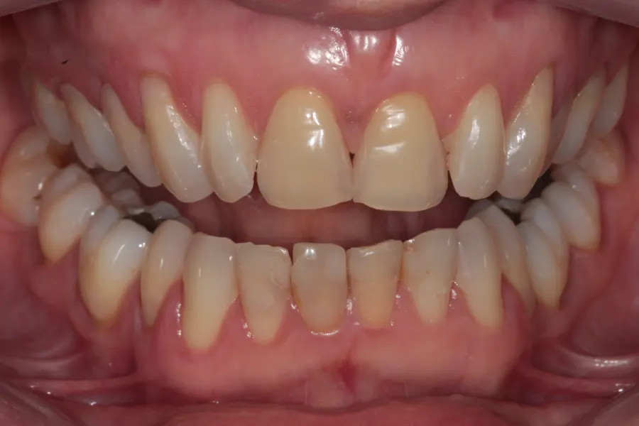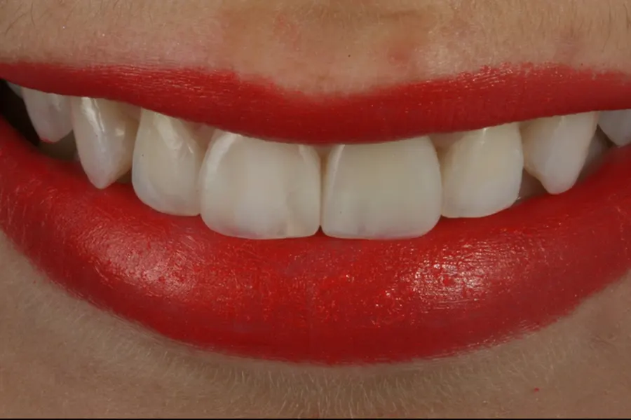 Transformação do sorriso com facetas ultrafinas para corrigir imperfeições dentárias.